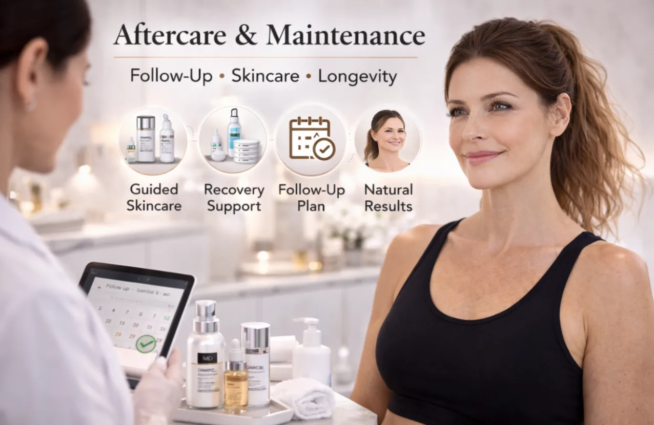You receive guided skincare recommendations and follow-up planning to maintain long-term, natural-looking results.