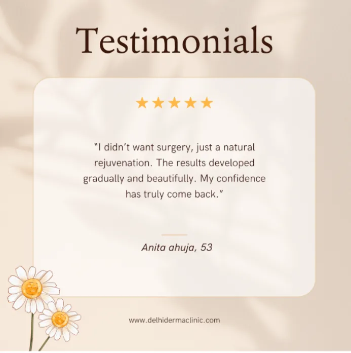 Real reviews from real patients who experienced Anti-Ageing treatments at Delhi Derma Clinic.